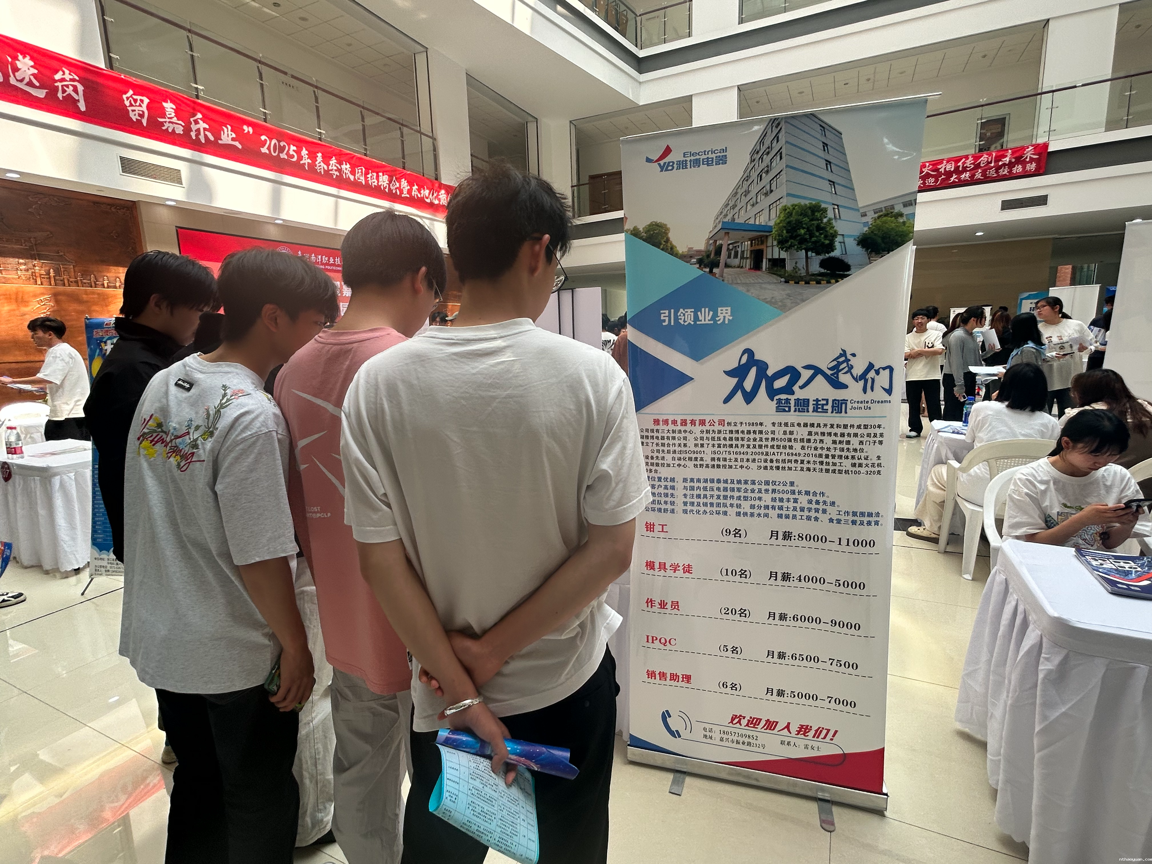 5月10日,嘉兴南洋职业技术学院“春风送岗·留嘉乐业”2025年春季校园招聘会暨本地优质企业供需对接会在杨槱图书馆大厅举行。嘉兴模具协会精心组织嘉兴猛犸象工业设计有限公司、上海汉霸数控机电有限公司、嘉兴雅博电器有限公司等12家会员企业走进招聘会。协会工作人员赴现场,与企业招聘代表交流,聚焦企业用工标准、技能人才需求痛点,推动行业培养与产业需求“同频共振”。